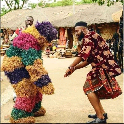 - Costumes: Masqueraders wear colorful, flowing garments made from raffia, cloth, feathers, and beads. Each material and design often has symbolic meaning, tied to the spirit being represented. For instance: